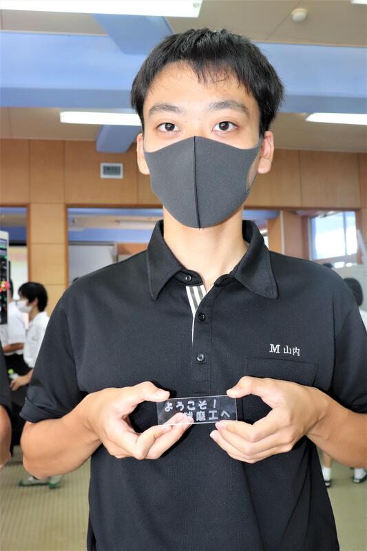 今年の体験入学では、資料が持ちやすいように球磨工オリジナルクリアファイルを準備しました。