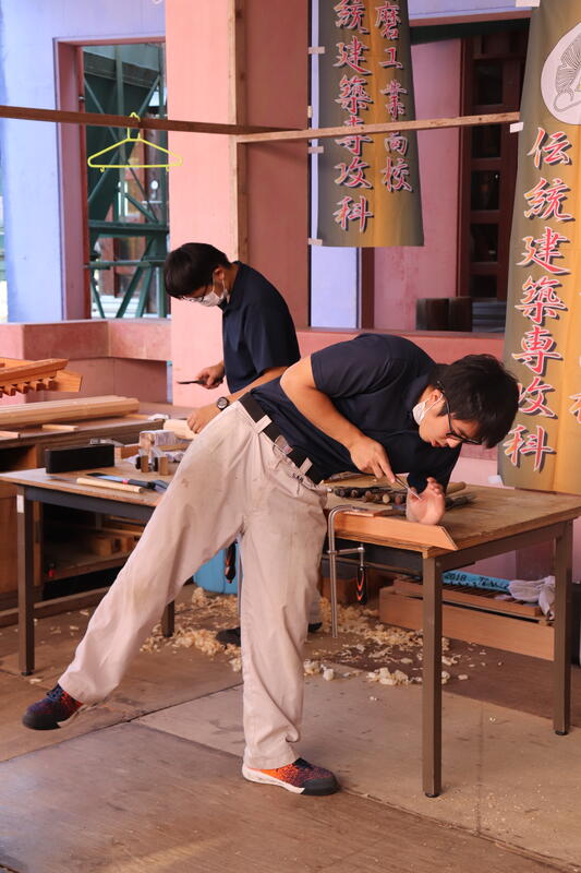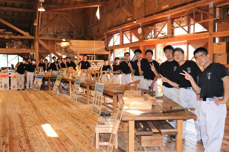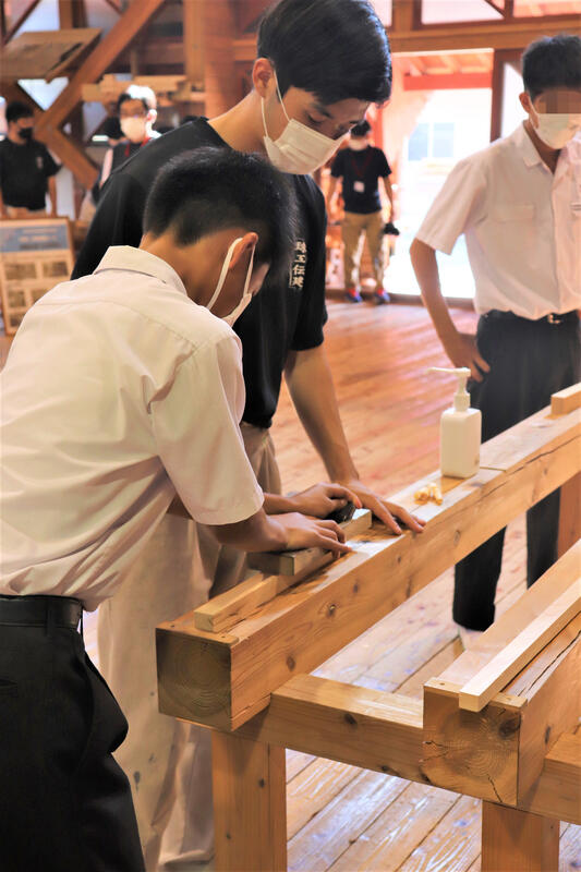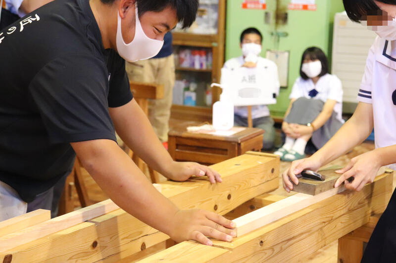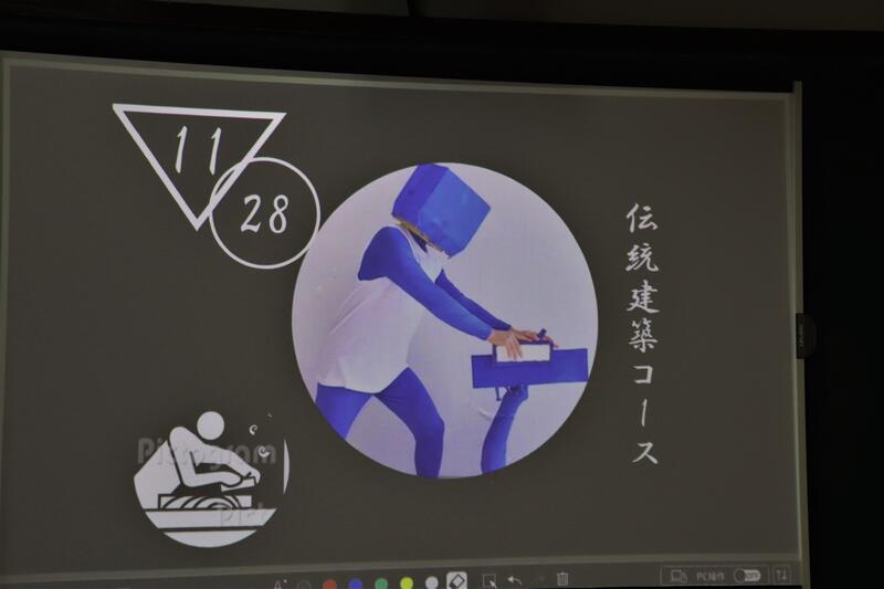 伝統建築部の工作物の紹介。熱心に聞いてくれています。