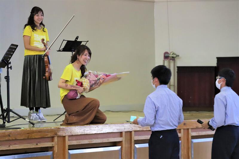 生徒代表が御礼の言葉を伝えます。MICAさんは優しくこたえてくださいました。