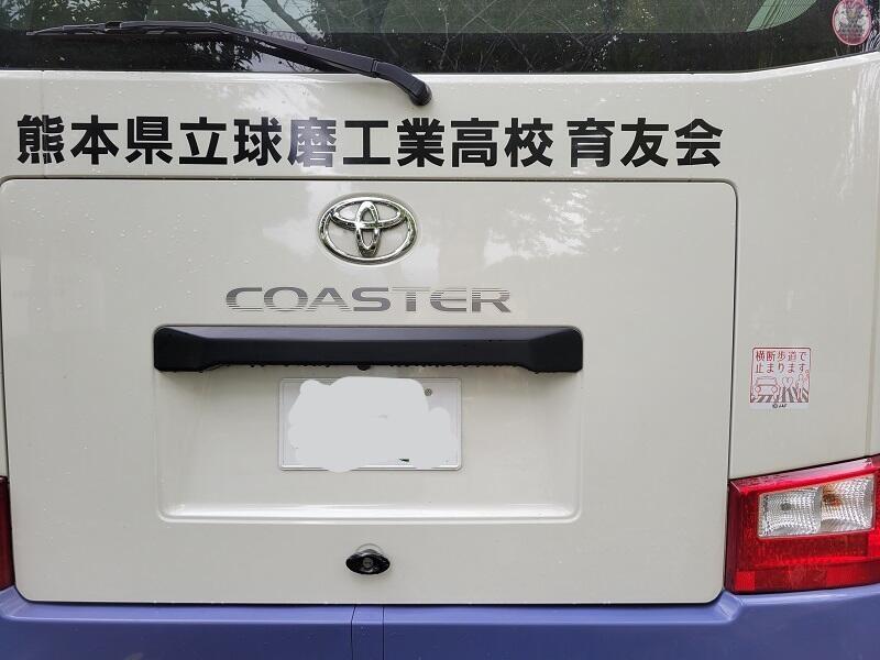 JAFの熊本支部より宣誓証とステッカー10枚をいただき、早速、育友会所有のマイクロバスに貼りました。