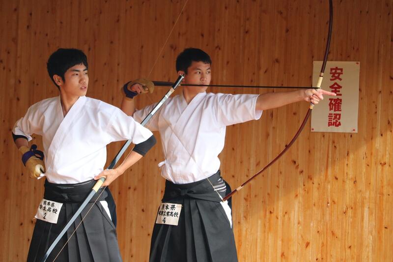 全国高等学校弓道選抜大会熊本県予選会において、男子団体Aチームが5校による決勝リーグに進出しました。全国大会の競技規則に則り、坐射による競技が行われ、7分以内に各選手4射計12射の4試合を戦い抜きました。