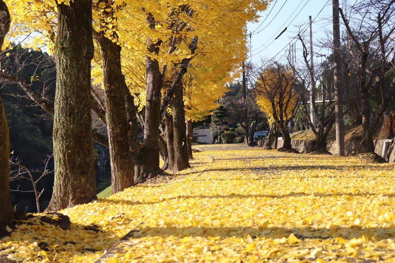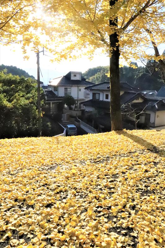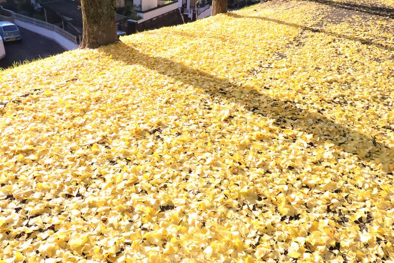朝は球磨工生により掃き清められていますが夕方には銀杏の絨毯が耀いています