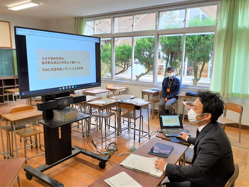 また、今回は、新型コロナウイルス感染症防止の観点から2年生の教室だけではなく3年生の教室も使用して実施しました。
