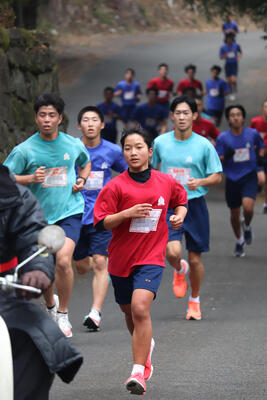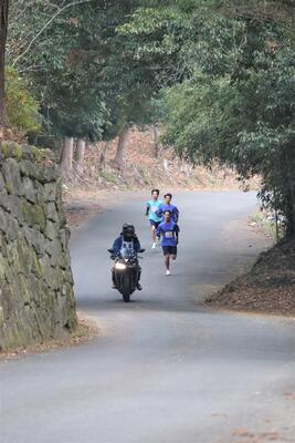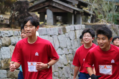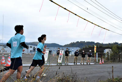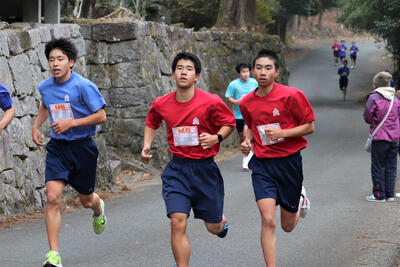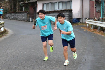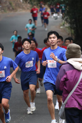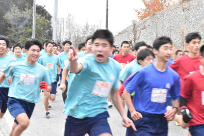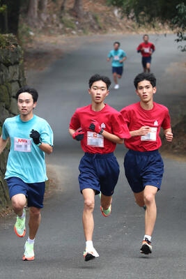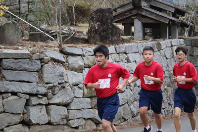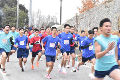「1年生は初の坂道コースへの挑戦、2年生は普段鍛錬している体力の成果を発揮、3年生は、なまった体に鞭を打ち走りきる」と力強く宣誓。