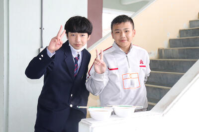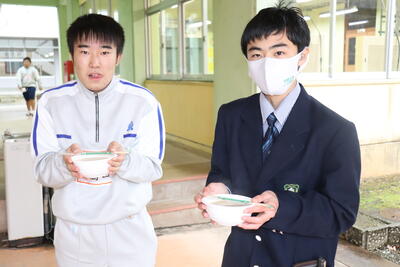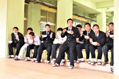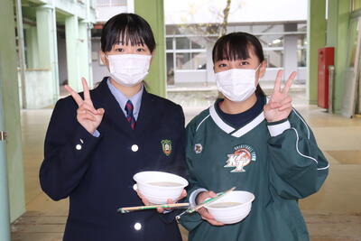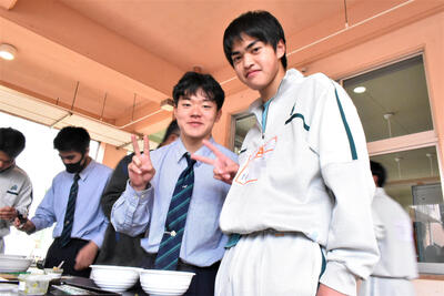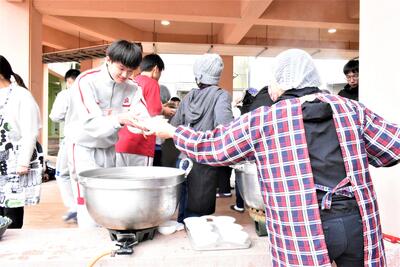 学校に帰着した生徒達を待っていたのはあたたかくて栄養満点の豚汁。