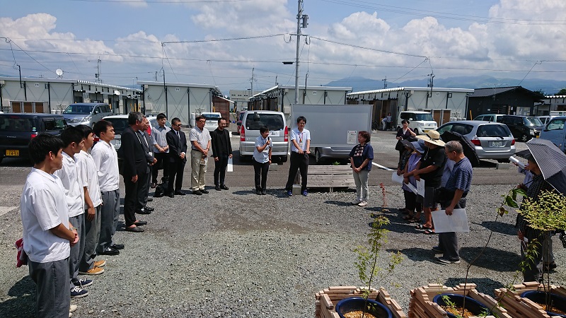 益城テクノ団地仮設住宅への植栽ボックス贈呈式(建築科)