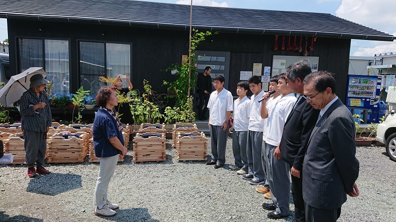 8月27日、日曜日に3年生の課題研究で制作した植栽ボックスを益城テクノ団地仮設住宅に贈呈しました。