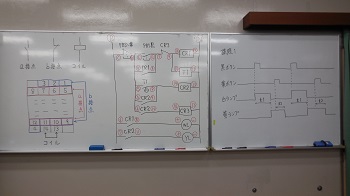 <3級電気機器組立て シーケンス制御の練習風景>