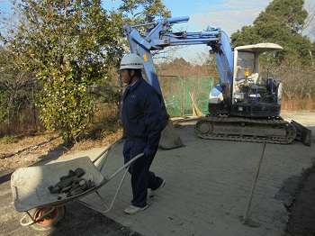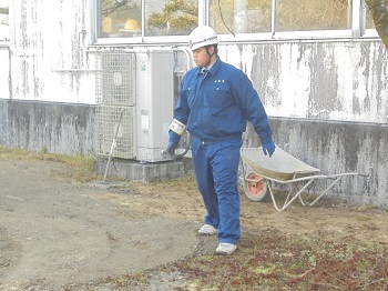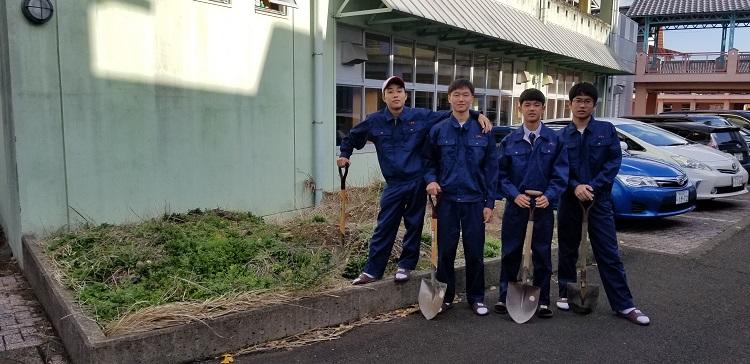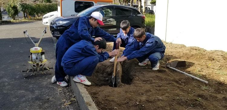 荒れ地を整地する生徒達