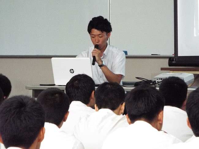 ◎講演をして頂いた、永野さん(電気科H17年度卒、水上中出身)