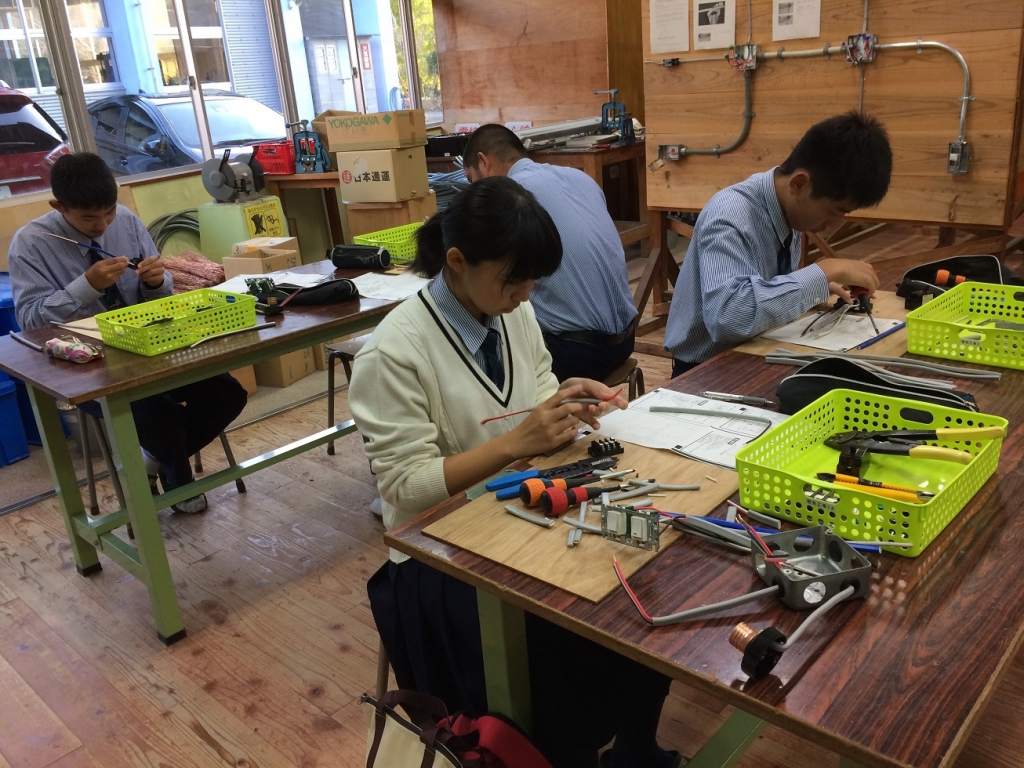 12月7日(土)熊本大学で行われる「第二種電気工事士実技試験」の単位作業をする生徒