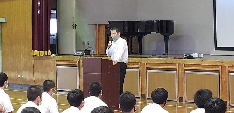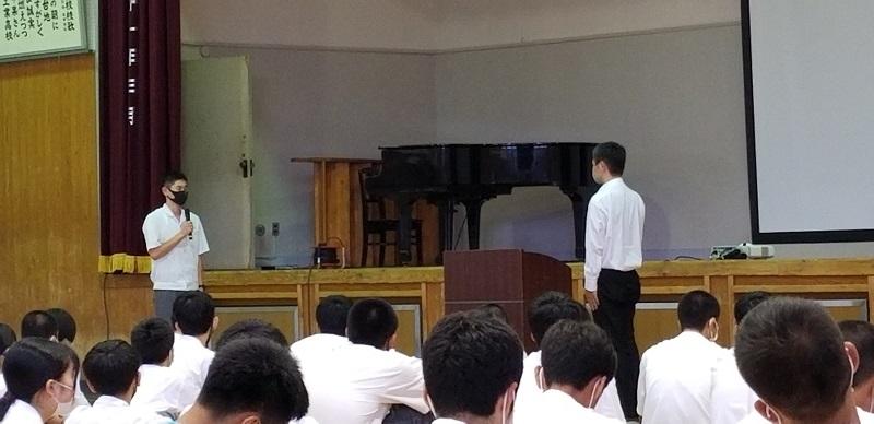 ハンドボール部主将の2E山下君が最後に「本日の講話をもとに、日々の練習を頑張りたい」とコメントしました。