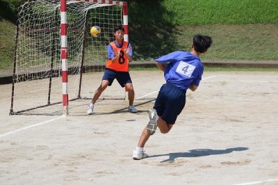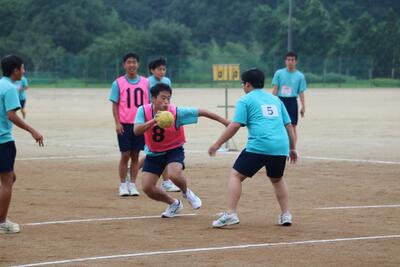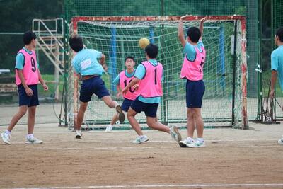 ハンドボールの様子。初めて挑戦する生徒も多く、ルールに戸惑いながらもエンジョイ