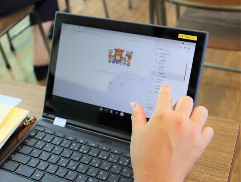 また、生徒の皆さんにも一人一台のPC端末(chrome book)が準備されています。