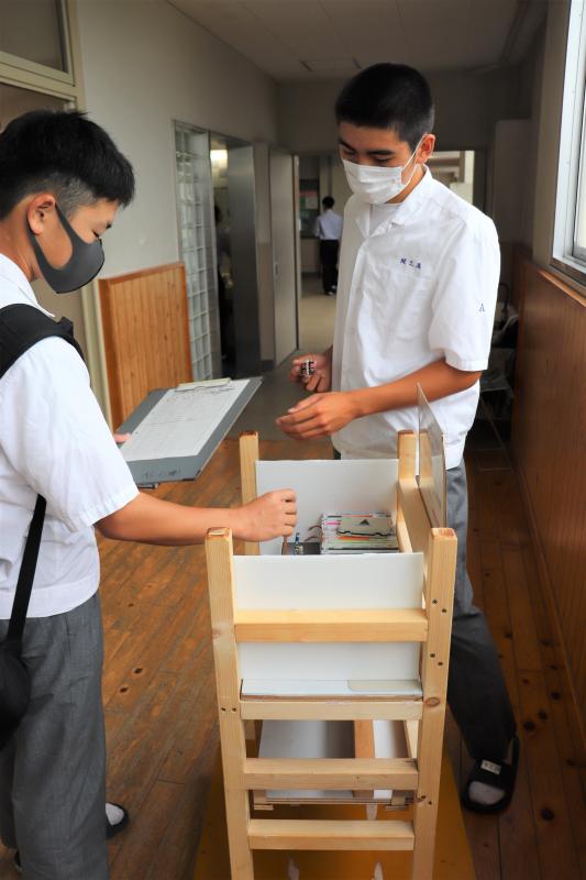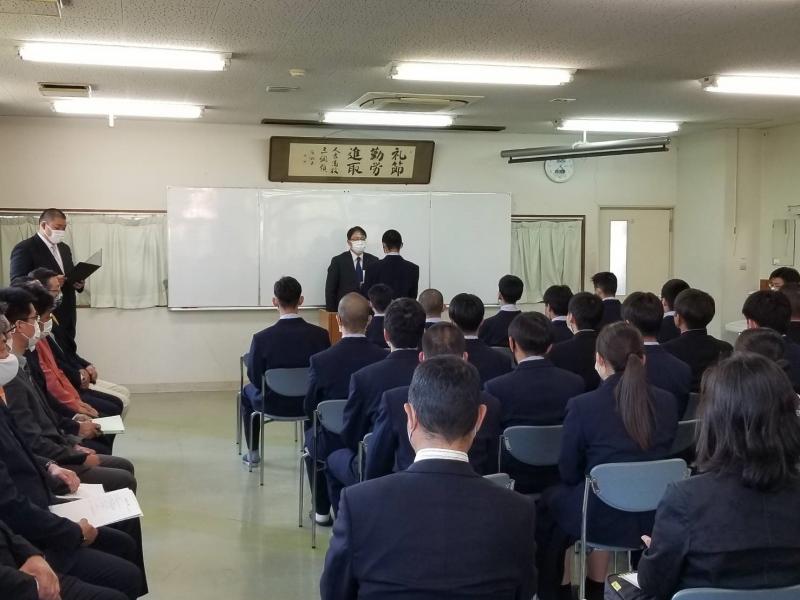 生徒を代表して2年生の勝永君が自身の将来の夢に1歩でも近づけるように大切に使わせていただきますと力強い挨拶を行いました。
