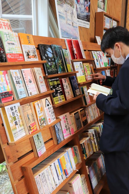 写真は1年電気科の生徒達が本を選んでいる様子。貸し出しも始まりました。