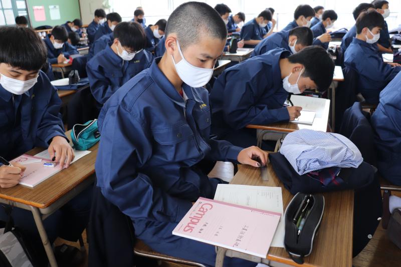 2年電気科の教室では、資格試験に向けての課外が行われており、静けさの中にも挑戦者の意欲が感じられる空間です。