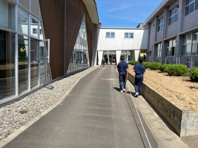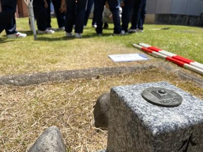 建設工学科実習棟と管理棟の校長室前にそれぞれ鋲を打ち、