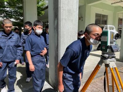 建設工学科の1年生が初めての測量実習に臨みました。