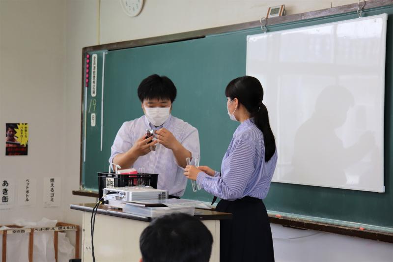 教室でもできる実験の最中でした。