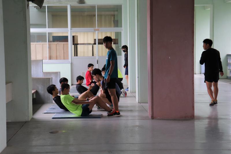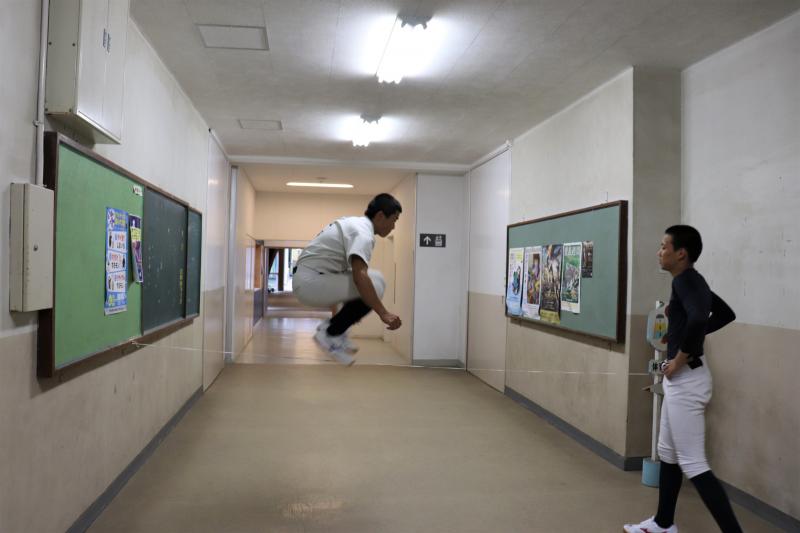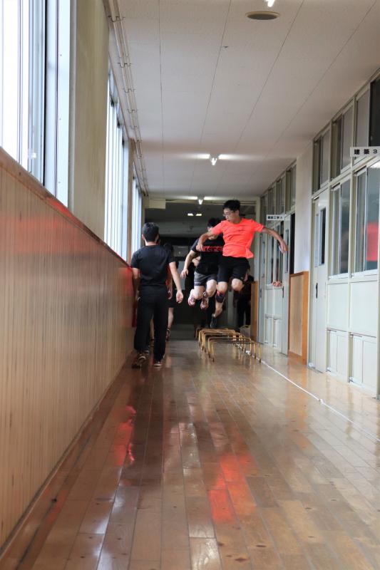 屋外競技の部活動は、雨天時グラウンドが使用できないので、校舎内でのトレーニングを行っています。