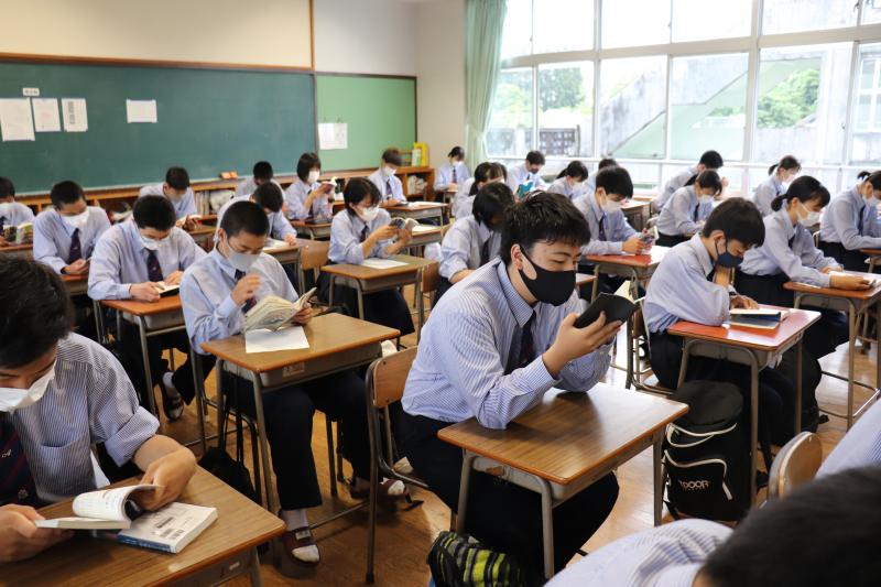 教室では読書に集中して取り組む球磨工生の姿がみられました。