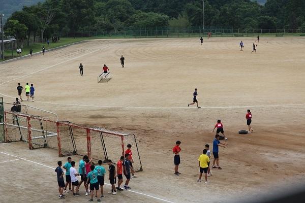 今週末に開催される県総体に向けて、グラウンドには朝から元気な声が響いています。