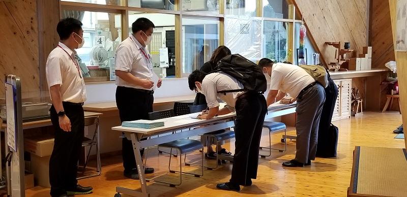 見学される方の受付風景