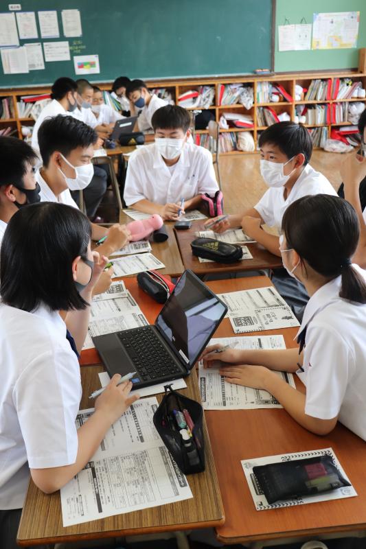 居住地が近い生徒同士で意見を出し合います。