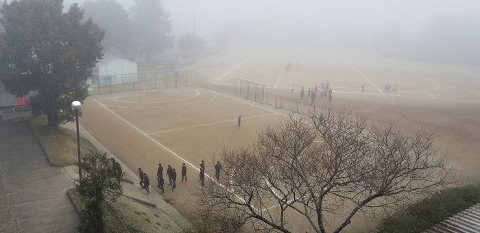 今朝は一段と冷え込み、午前7時30分からは球磨地方特有の『霧』が出て視界が悪い中ではありますが、生徒達は朝練や課外に頑張っています。