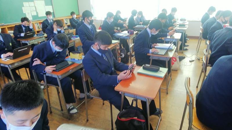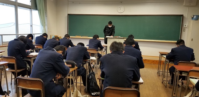 3年生は明日から学年末考査が始まりますので、本日1月25日(月)は3年生にとって、「高校生活最後の弁当!」の日となり、電気科3年生の教室へ行ってみました。