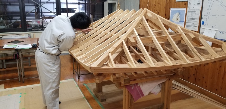朝早くから頑張っている伝統建築専攻科1年の鳥越君(球磨工業高校出身)