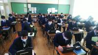 建築科2・3年の技能検定2級の学科試験の課外の様子