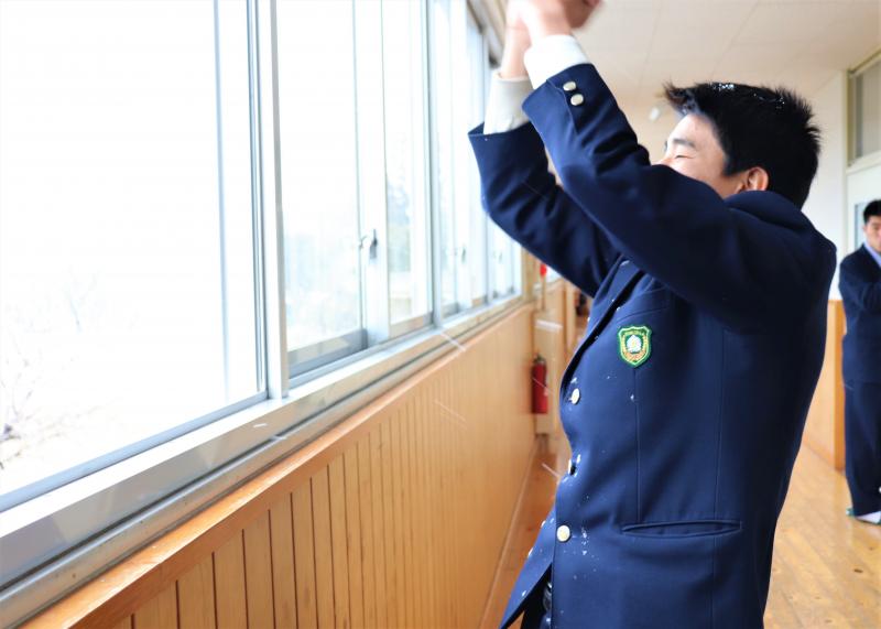 「3年間、弁当を作ってくれた方に感謝しながら、噛みしめて食べなさい!!」の一言で、生徒達は、「そうだ! 今日が最後ですね!」と、一口一口を噛みしめるように食べていました。