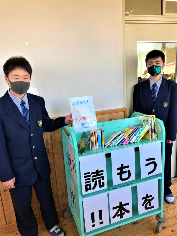 図書委員会の新たな取り組みとして、カートに図書室の本を載せて教室を廻る、