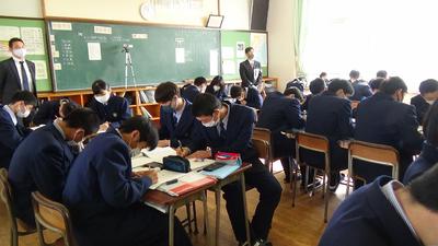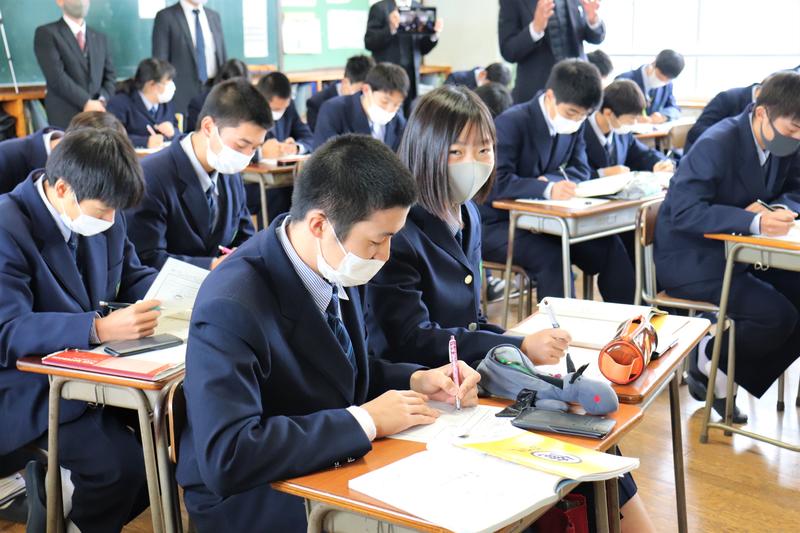 生徒は各ホームルームで放送を聞き、大事なところをメモしながら聞く姿がありました。