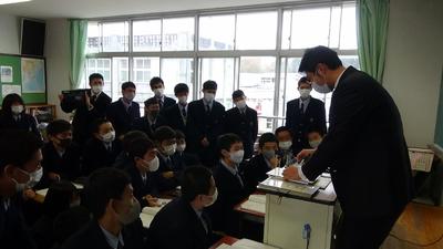 校長訓話のあと、教務部・進路指導部・生徒指導部より、生徒へメッセージを送りました。