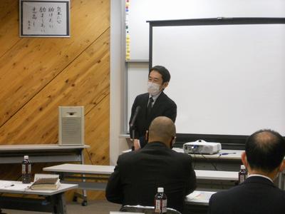 報告会では研究主担である城本より、本研究の柱となる①高校3年間の学びの見通しを持った系統的な学習指導の検証②主体的・対話的で深い学びの実現に向けた学習・評価方法の工夫③新学習指導要領における3観点に評価方法の研究について報告しました。