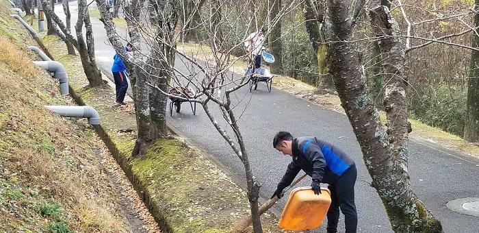 12月14日(月)、昨夜から木枯らしが吹き荒れましたので、学校の校門前の道路には大量の落ち葉が落ちていました。駅伝部の生徒が朝練を止めて、清掃をしてくれました。