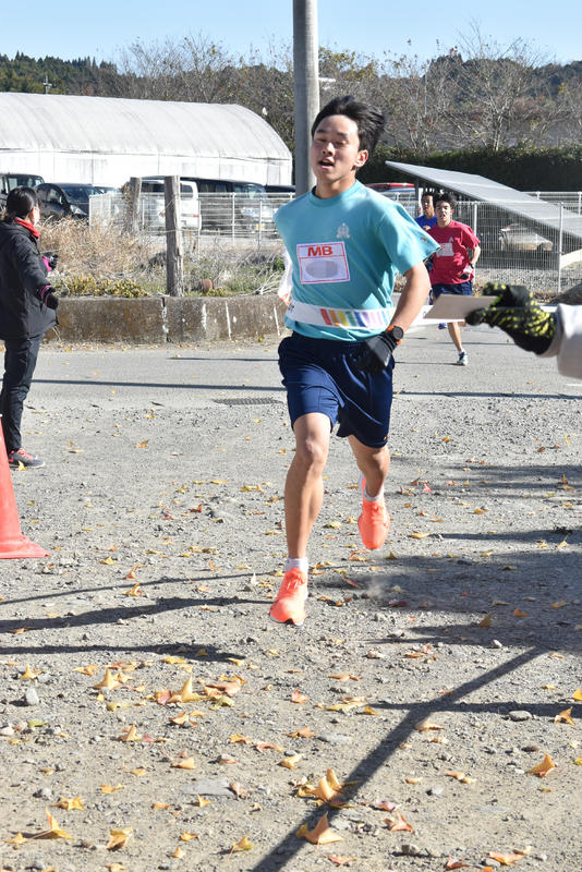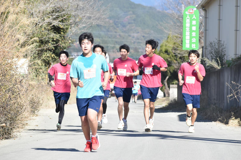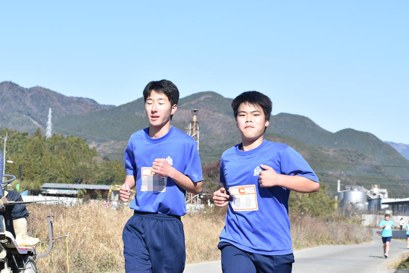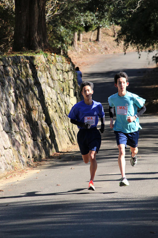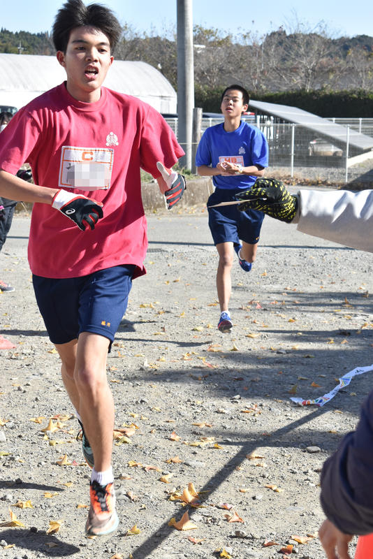 1年生才畑君と2年生溝辺君が先頭を走って来ます。