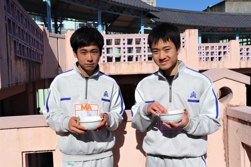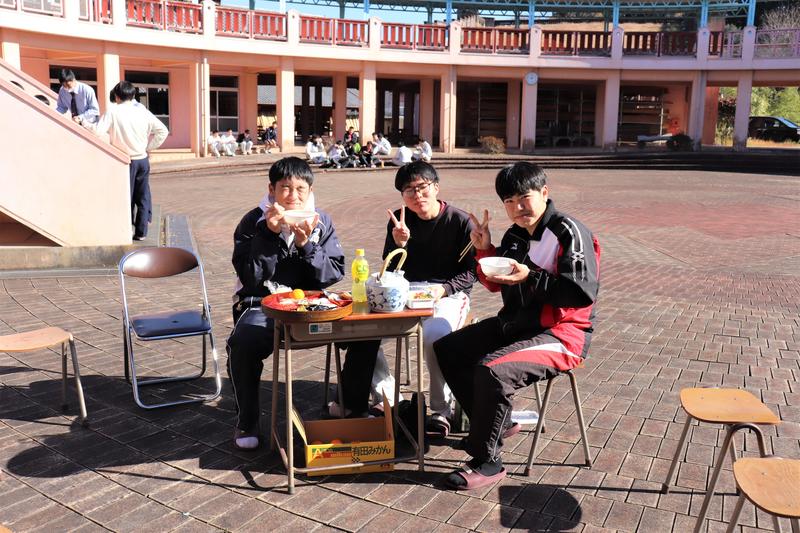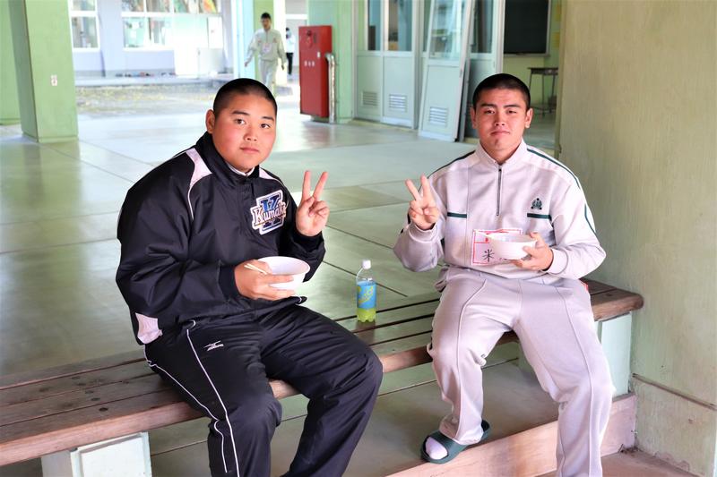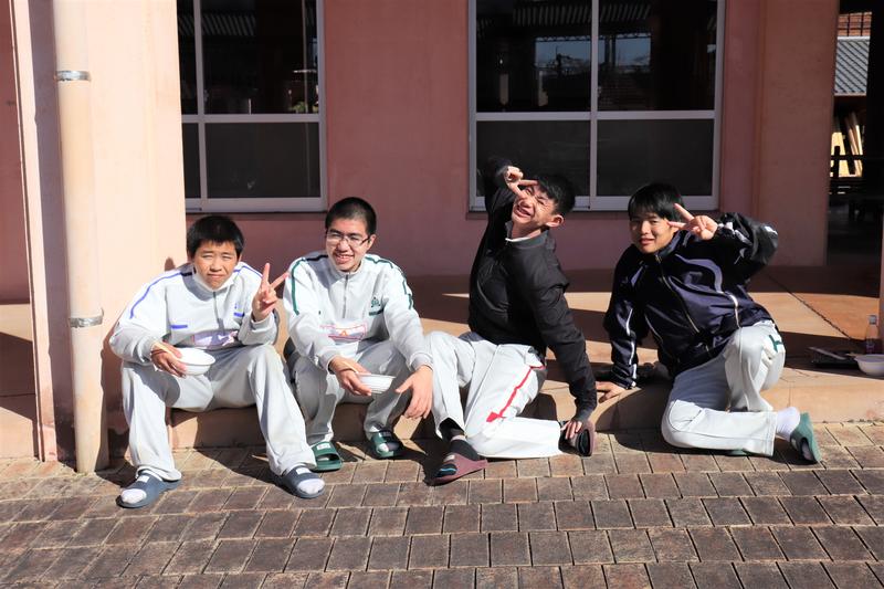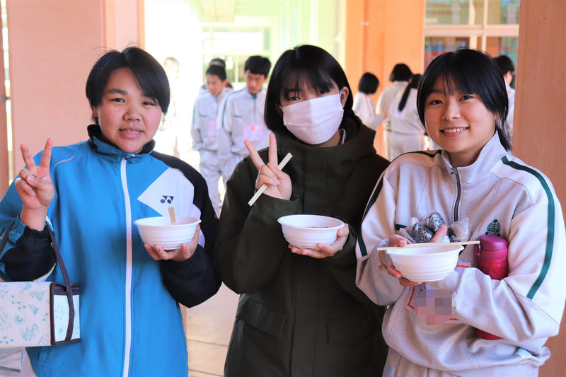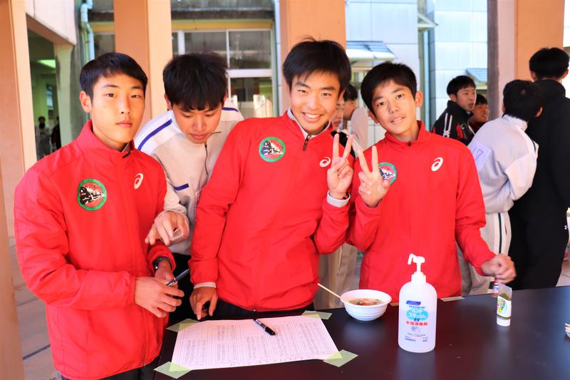 第一市民グラウンドから学校へ帰着すると、保護者の方々が作ってくださったあたたかい豚汁が待っていました。