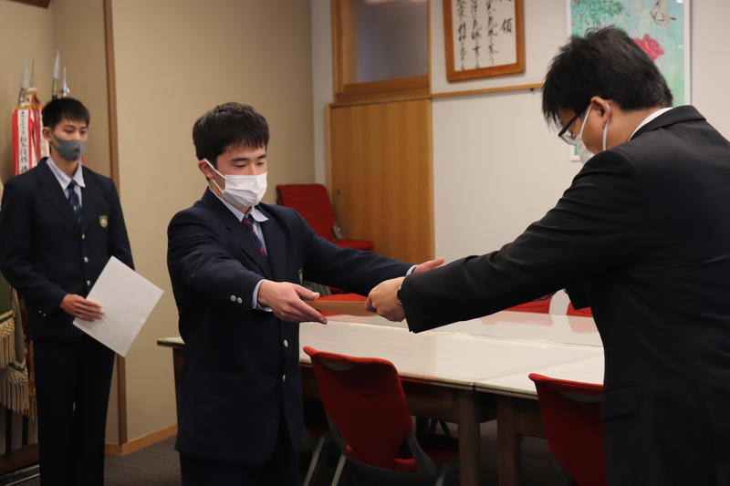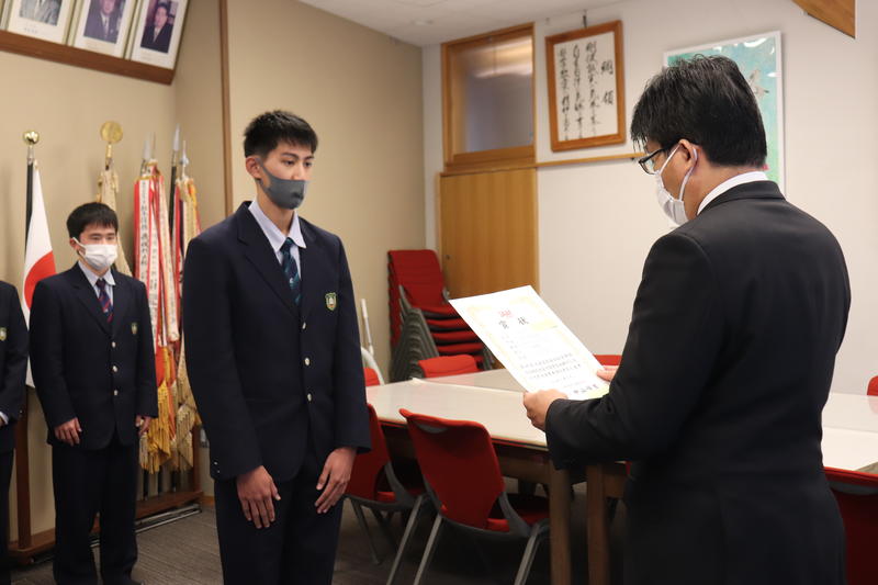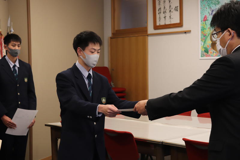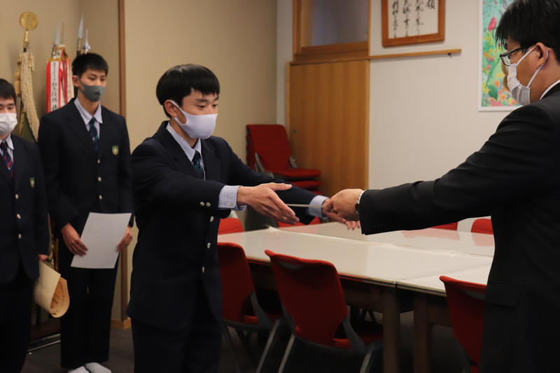 終礼後には、代表者のみの表彰式を校長室で執り行いました。