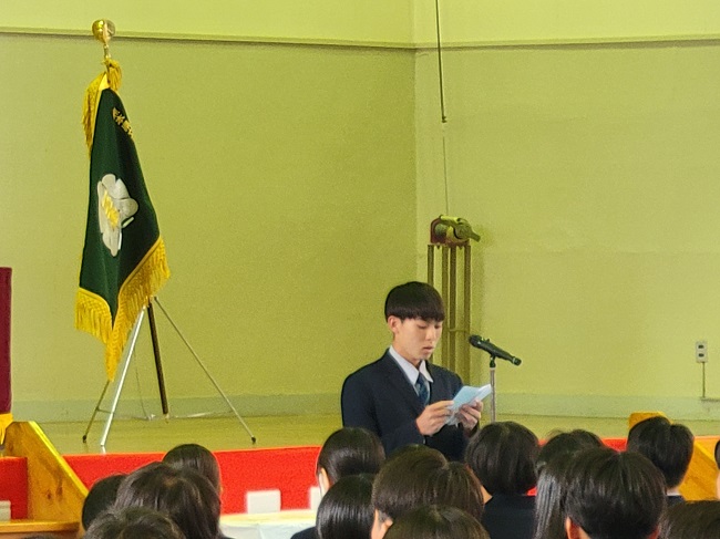平井和悠君(水上中出身)生徒会長による在校生代表送辞