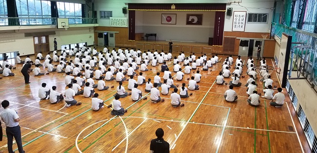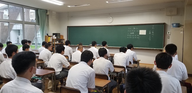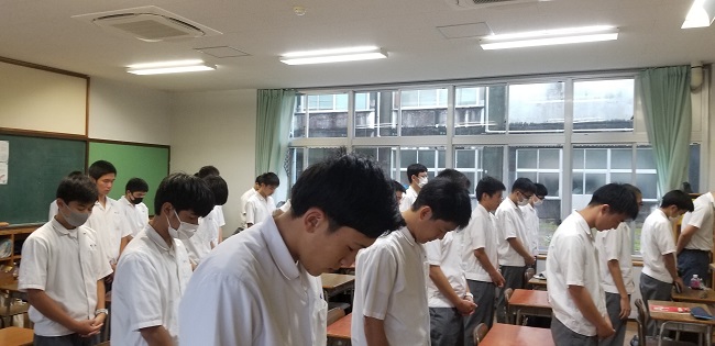 7月4日(土)の南九州地域の集中豪雨により休校となっていましたが、本日より授業再開となりました。授業開始にあたり、今回の災害により尊い命が奪われ、未だに復旧作業、避難生活の方々がおられます。9時より黙祷を行った後、校内放送で原田校長が講話をされた後、1限目に3学年集会、2限目に2学年集会、3限目に1学年集会が体育館で行われました。