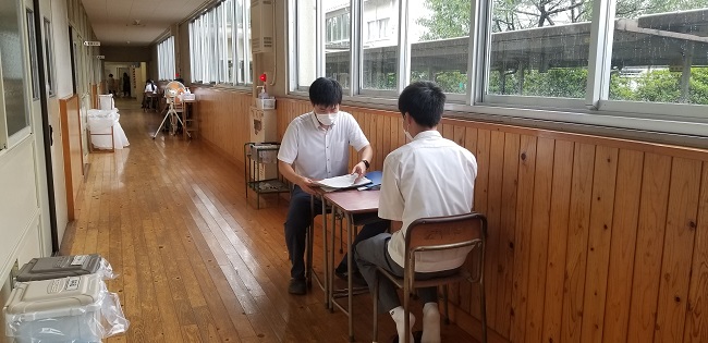 授業は自学学習で、それと並行して担任との二者面談が行われました。終礼後、各部活動に分かれて、各顧問による説明が行われた後、放課となりました。