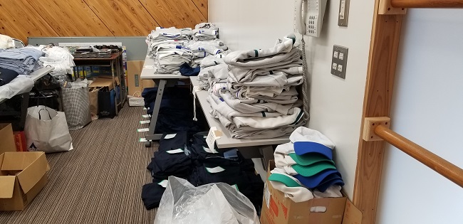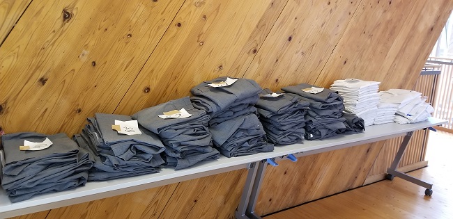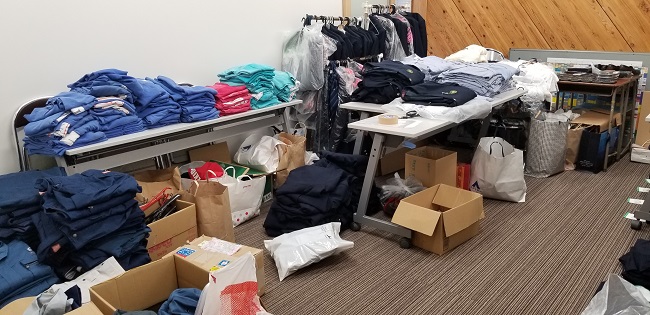 制服・体育服・実習服・関数電卓・製図道具は、多くの皆様から寄贈したいただきました。ありがとうございました。また、関数電卓は、期末考査前に建築科53期生の西君と宮川君が「後輩のために!」と、八代市で複数の店を探し回り、関数電卓10台を寄贈していただきました。今回寄贈していただいた品物は、育友会役員や職員で生徒が受取りやすいように整理してます。