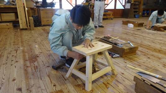 伝統建築コース、3年生の「伝統技法」で四方転び椅子を制作しています。
