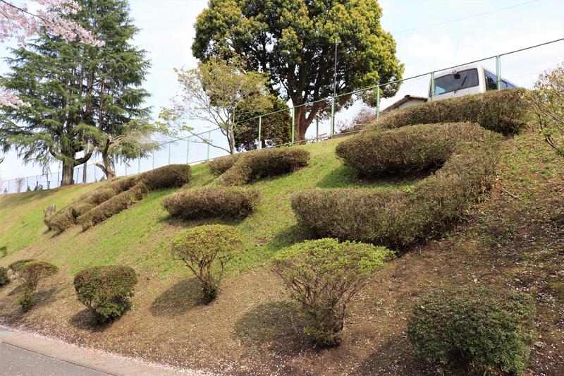 北門坂の桜の反対側に、明らかに何かの文字を表したツツジの植込みがあります。