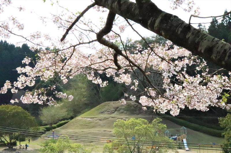 村山公園のテニスコートに向かう登り坂の山桜をパシャリ。7分咲きといったところでしょうか。