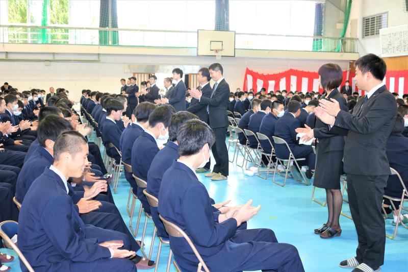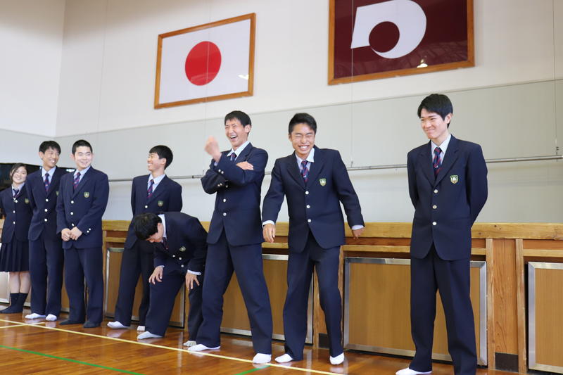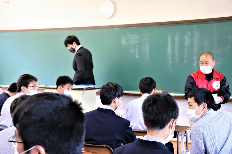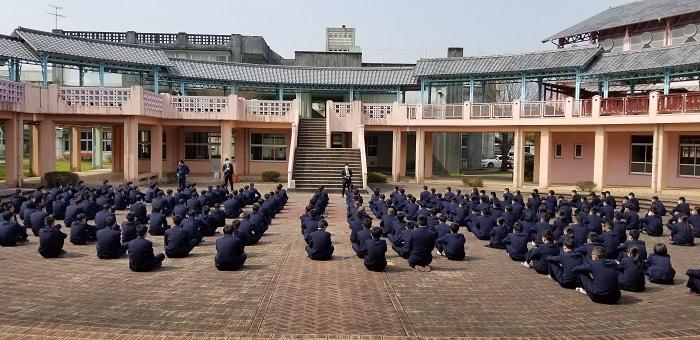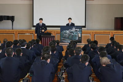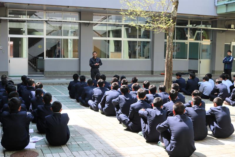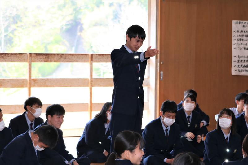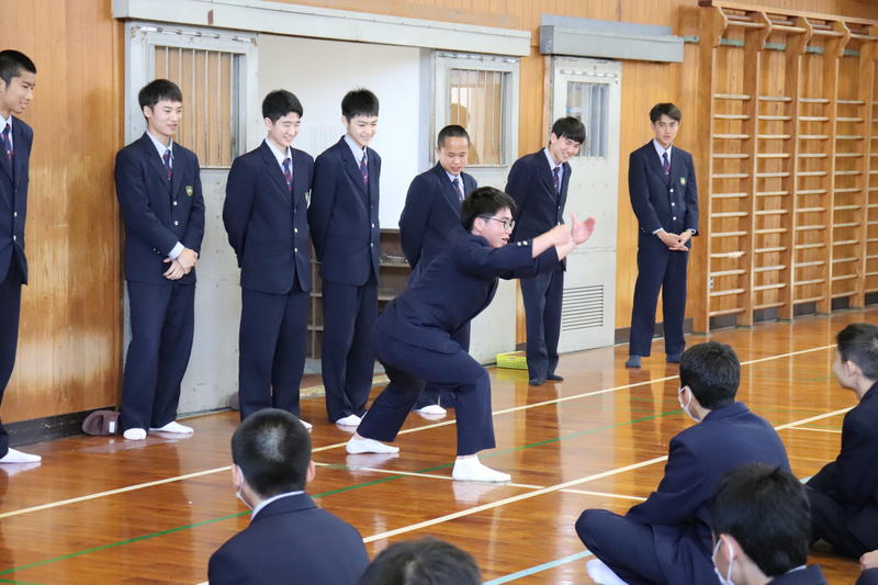 体育の坂井先生は球磨工業高校校歌の歌詞についてお話をされました。